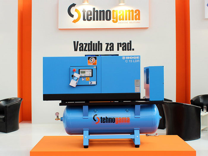 Poslujemo u sopstvenom objektu od 1.280 m², sa 280 m² kancelarijskog prostora i 1.000 m² servisno-remontnog centra opremljenog za održavanje i remont kompresora i prateće opreme za sisteme komprimovanog vazduha.